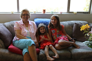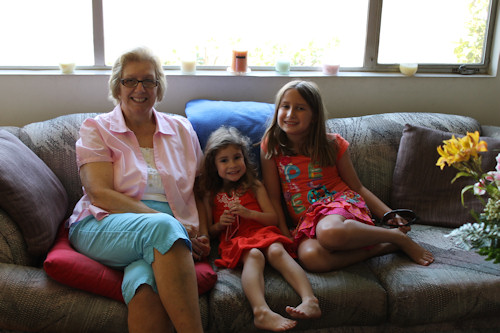Granddaughters Emmarie (center) and Lilianne help Carole celebrate Mothers' Day, 12 May 2013.