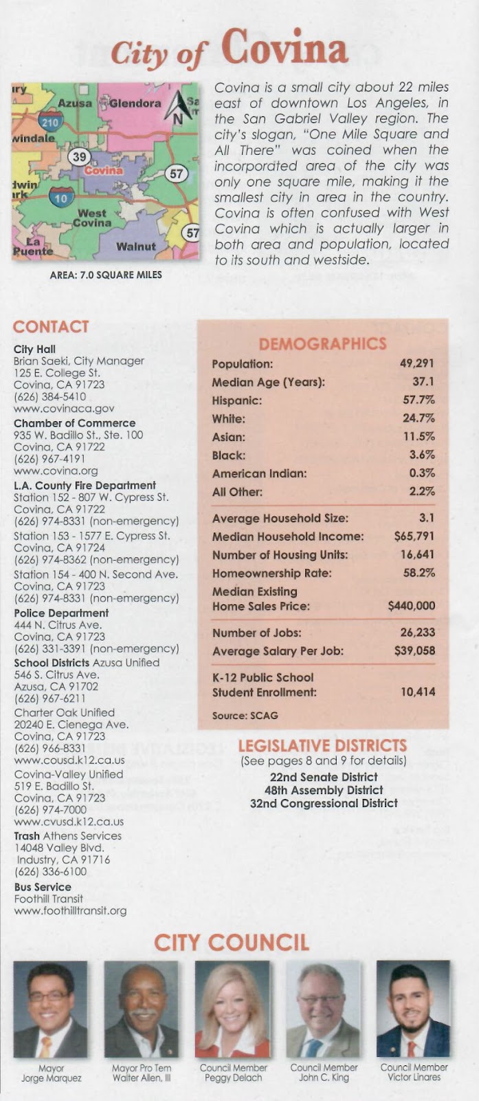 SOURCE: Community Profiles: The 2018 Guide to LA County Cities; Demographics, Numbers, Public Information, p. 36. Published by CIVIC Publications, Inc. Supplement in the Los Angeles Times, Monday, February 12, 2018.