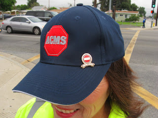 For being selected "Crossing Guard of the Year," our Lark Ellen Elementary School crossing guard, Linda, was honored at a luncheon on May 16, 2013, and given a certificate and several gifts including a new cap and pin for excellence (below).