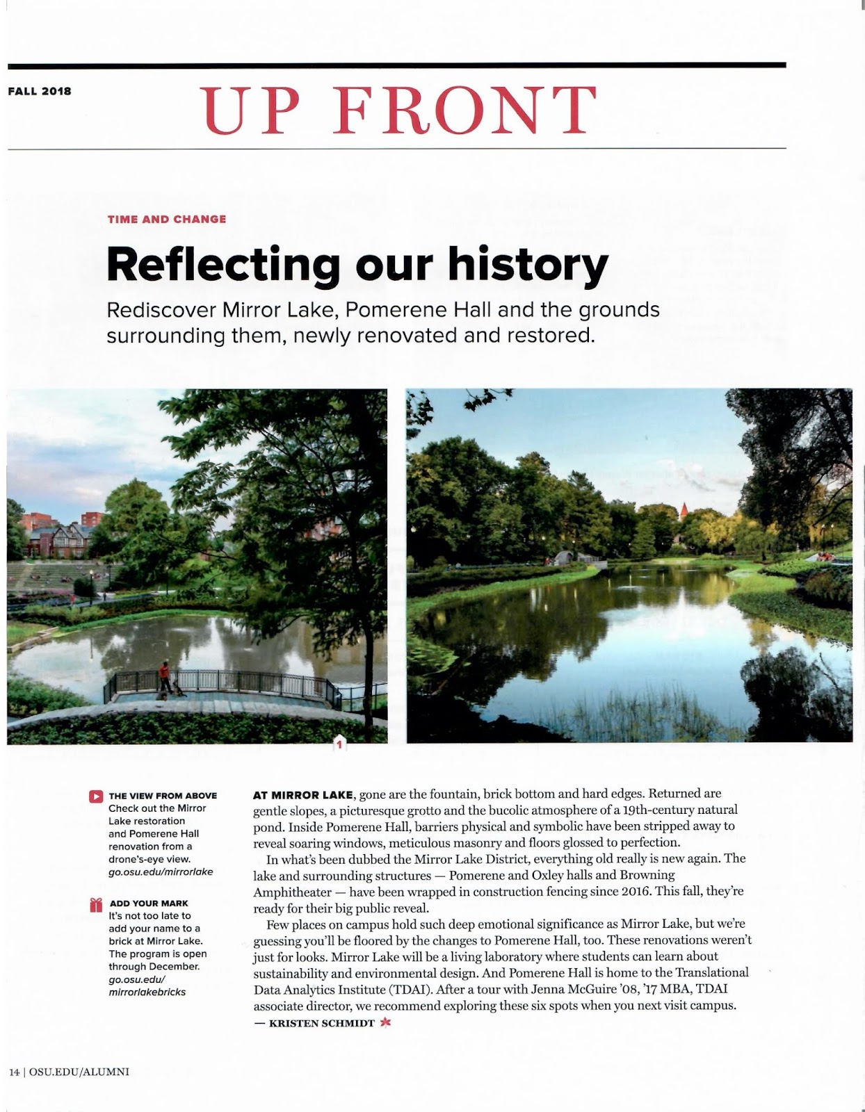 Mirror Lake, Ohio State Alumni Magazine Fall 2018, p. 14.